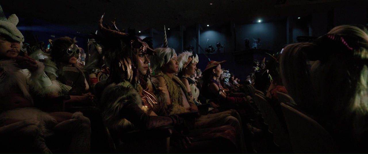 The movie opens with a shot of Lydia on a train, being talked about by someone recording her. There is then a smash cut to the end credits of the movie, which, as indicated above, lasts three minutes and three seconds. The font is extremely small. The pure black background and white text make it difficult to even read the credits. Monster Hunter and Capcom are provided thanks, which they probably should not accept.